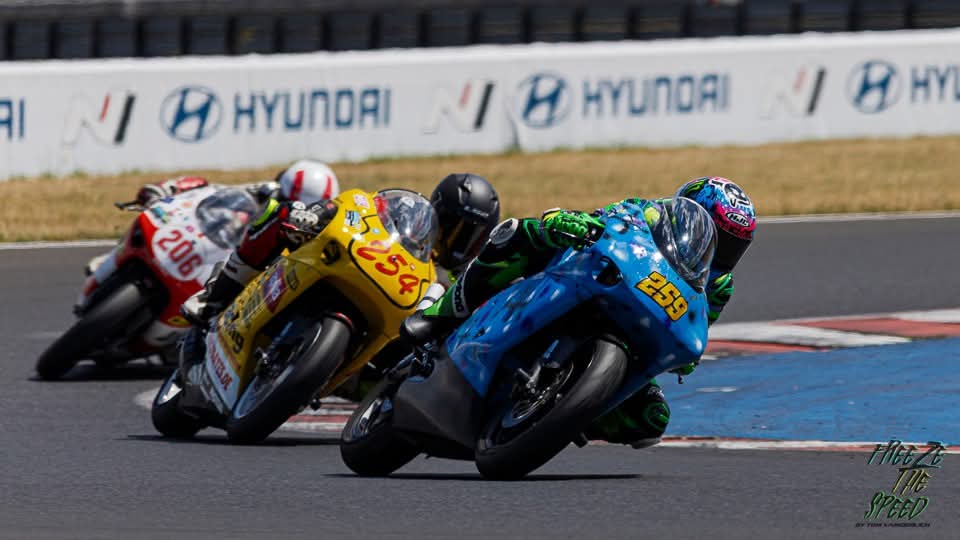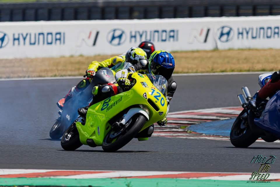 Um die restlichen 2 Plätze auf dem Stockerl entbrannte ein Kampf zwischen Alex Bannert, Niklas Seydel und Lutz Fleißig. Letztendlich war die Reihenfolge auf dem Zielstrich dann Daniel Kämmerling vor Niklas Seydel und Alex Bannert. Absolut bemerkenswert war das Duell schon deshalb, da Niklas hinten mit einem Slick unterwegs war und so an einigen Stellen Vorteile hatte, aber an anderen Stellen sehr vorsichtig unterwegs sein musste. Auf dem Logenplatz konnte Lutz Fleißig sich das ansehen, der seine, doch schon betagte, Honda NSR250 MC16 so ganz nebenbei auch noch mit der schnellsten Rundenzeit der SP250 Fahrer um den Kurs trieb.
