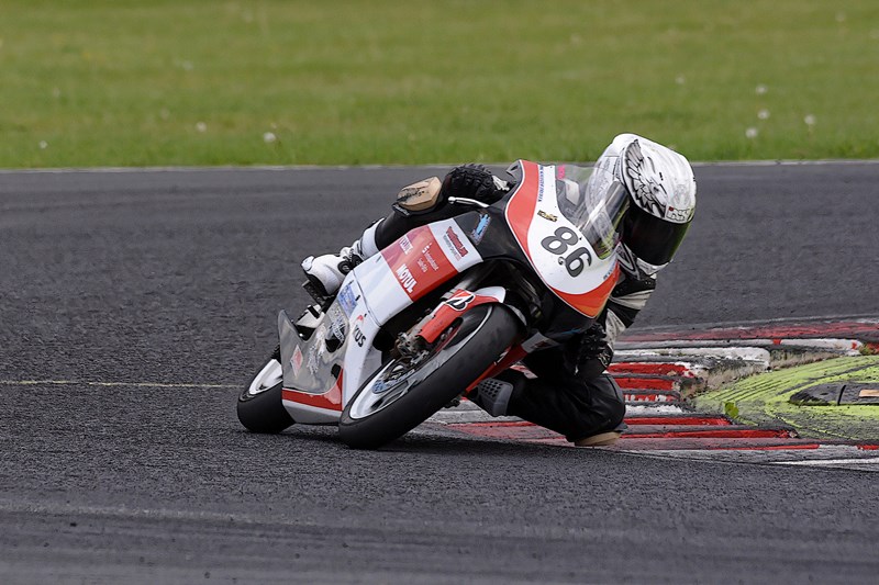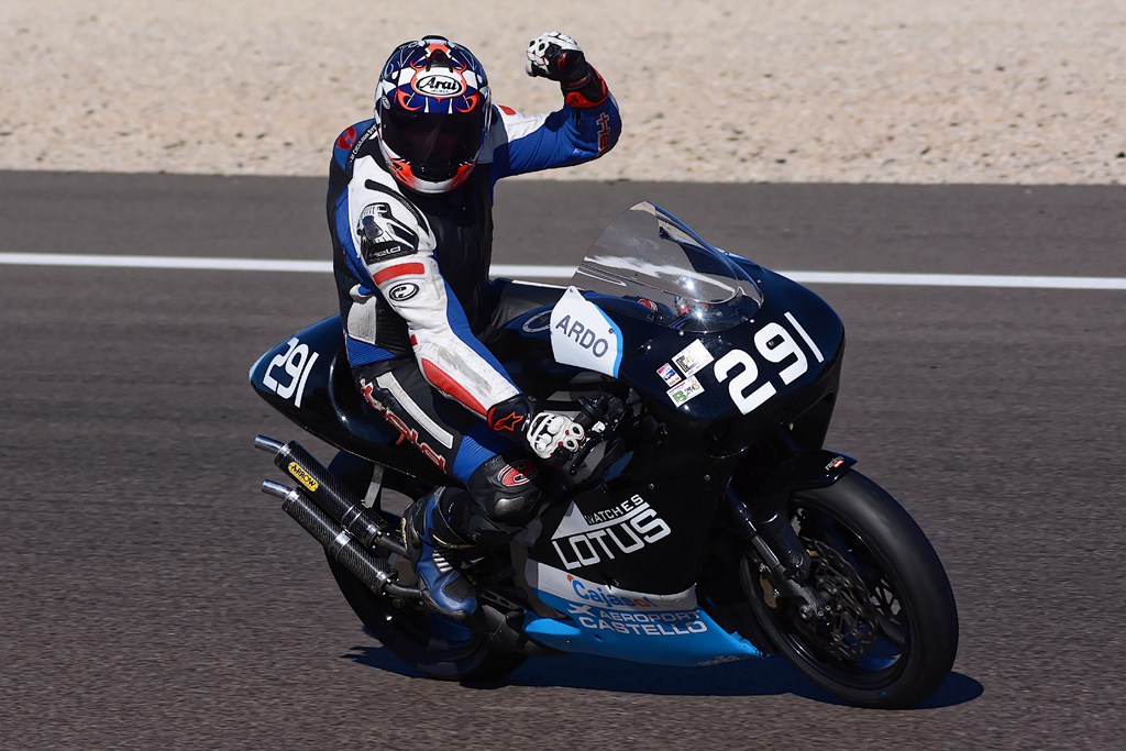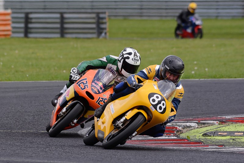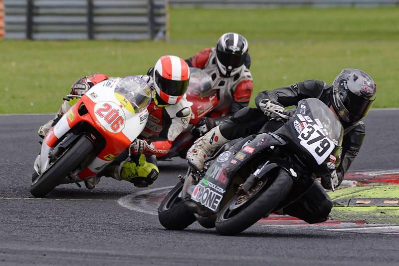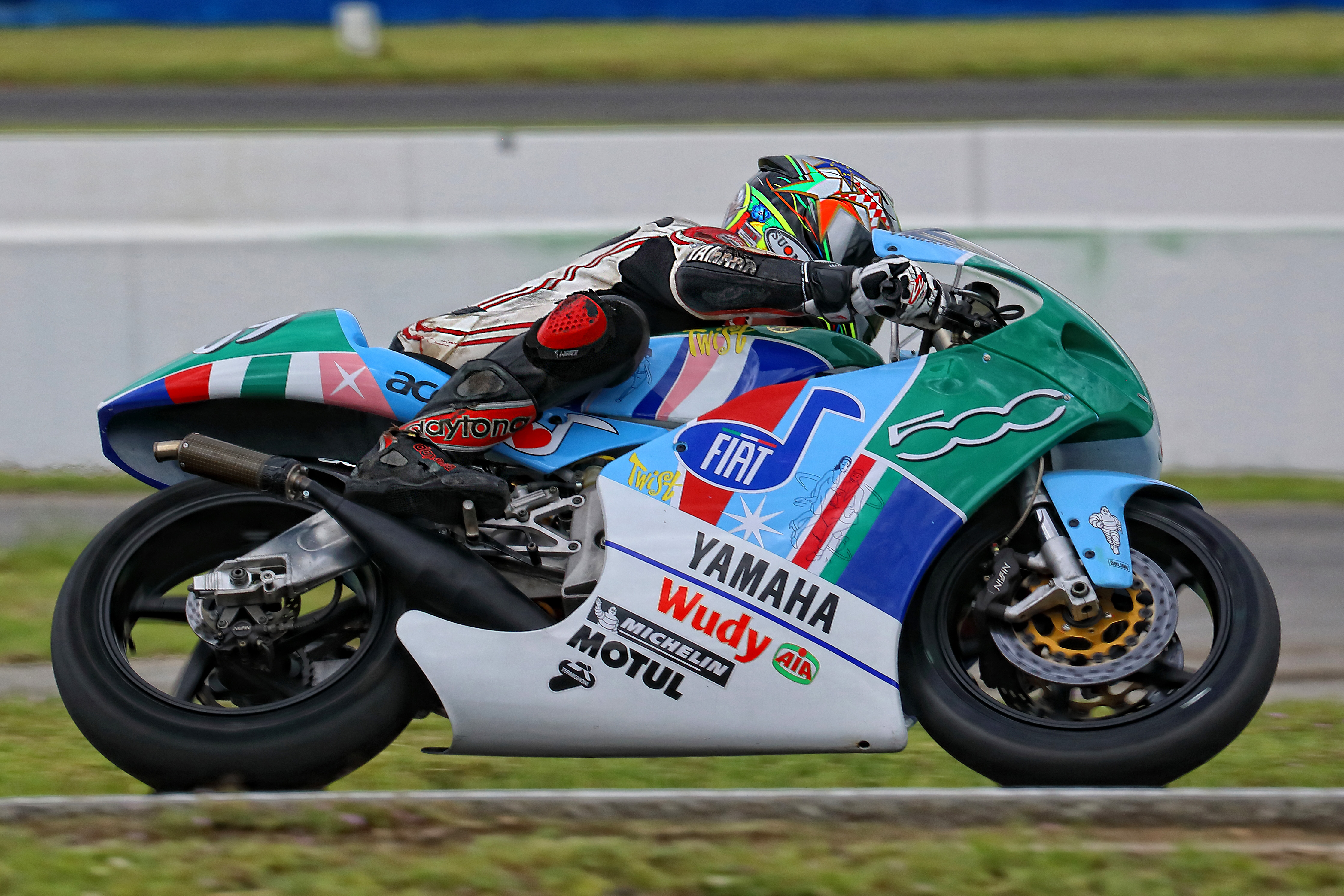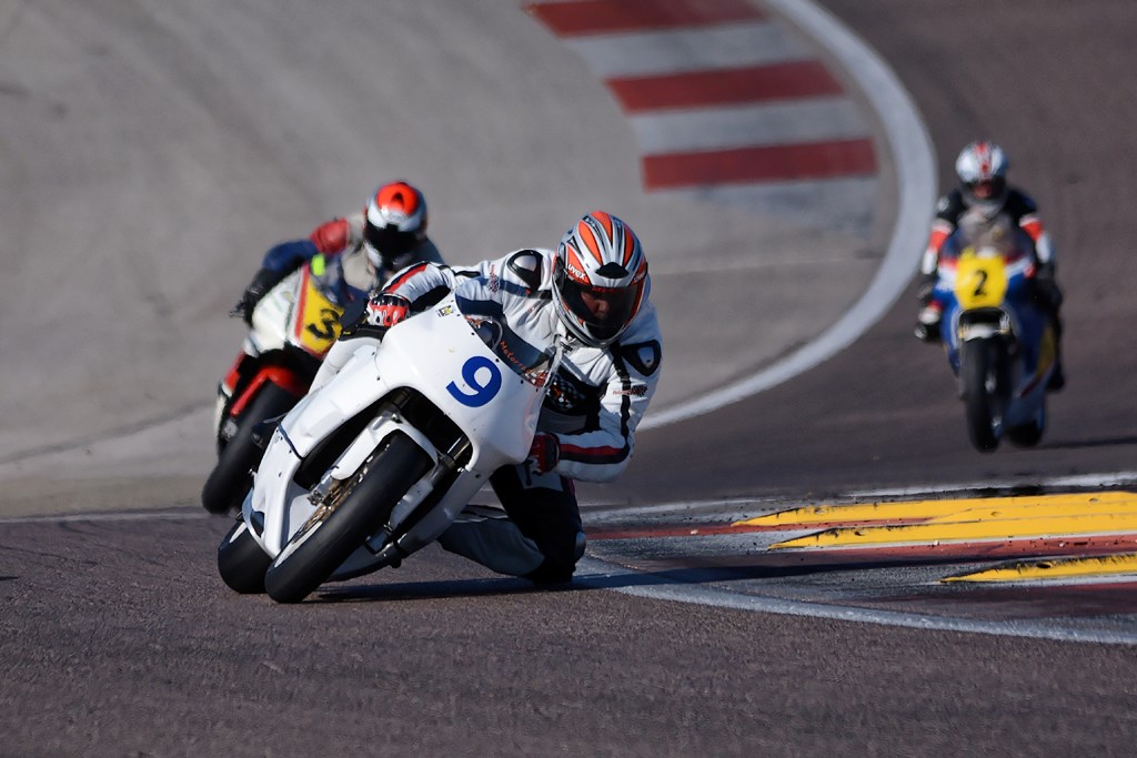 Ab der 4 Runde konnte Mike mit seiner TZ250 Ron auf der Ronax V4 unter Druck setzen, übernahm ab der Rennhälfte die Gesamtführung und verteidigte sie bis zum Rennende.